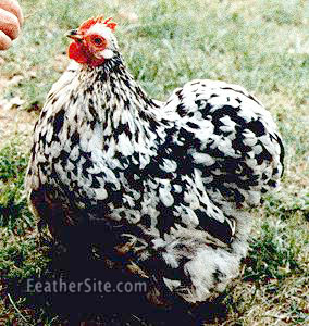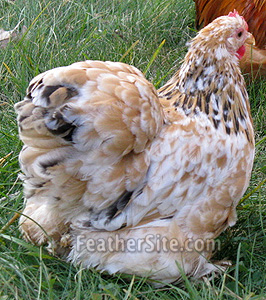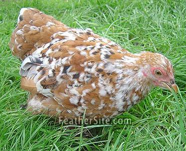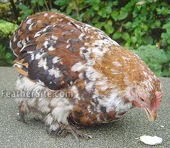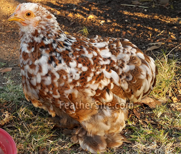 This is a Mottled Buff Columbian Cochin bantam pullet