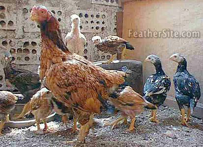 An Asil from Peru with her partly grown brood