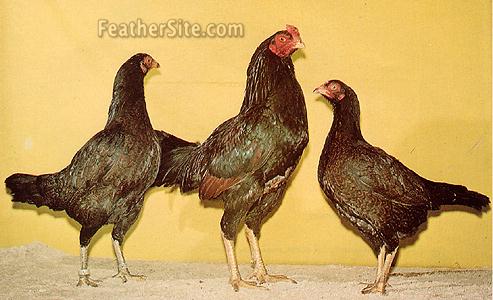 Three Aseel roosters from India: A Naked Neck Short Beak, a normal beak, and a Long-tailed Short Beak
