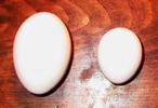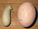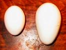 Large chicken egg and Black Swan egg (which should show a greenish tint)